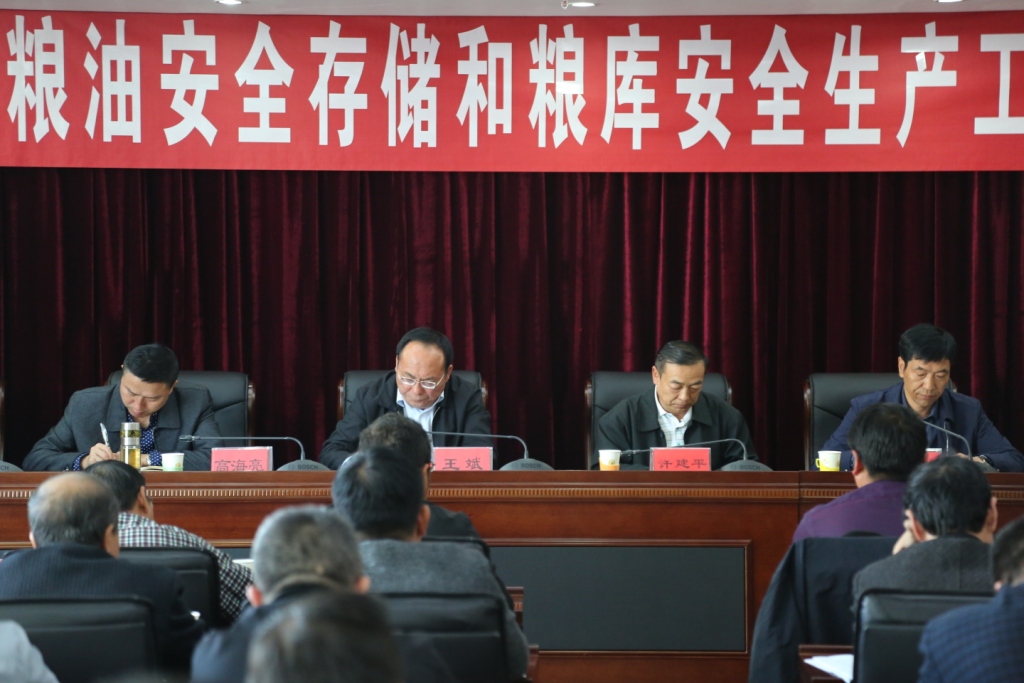 为全面落实粮油安全存储和安全生产责任,确保储备粮油安全存储和粮库安全生产, 10月18日-19日,市发展改革委召开全市粮油安全存储和粮库安全生产工作会议。各县(市、区)粮食局局长、分管安全工作的科室负责人、粮油购销公司负责人及市储备粮管理有限公司、市发展改革委主要领导、分管领导、涉粮科室负责人参加会议,省粮食局党组成员、副局长许建平到会指导。
