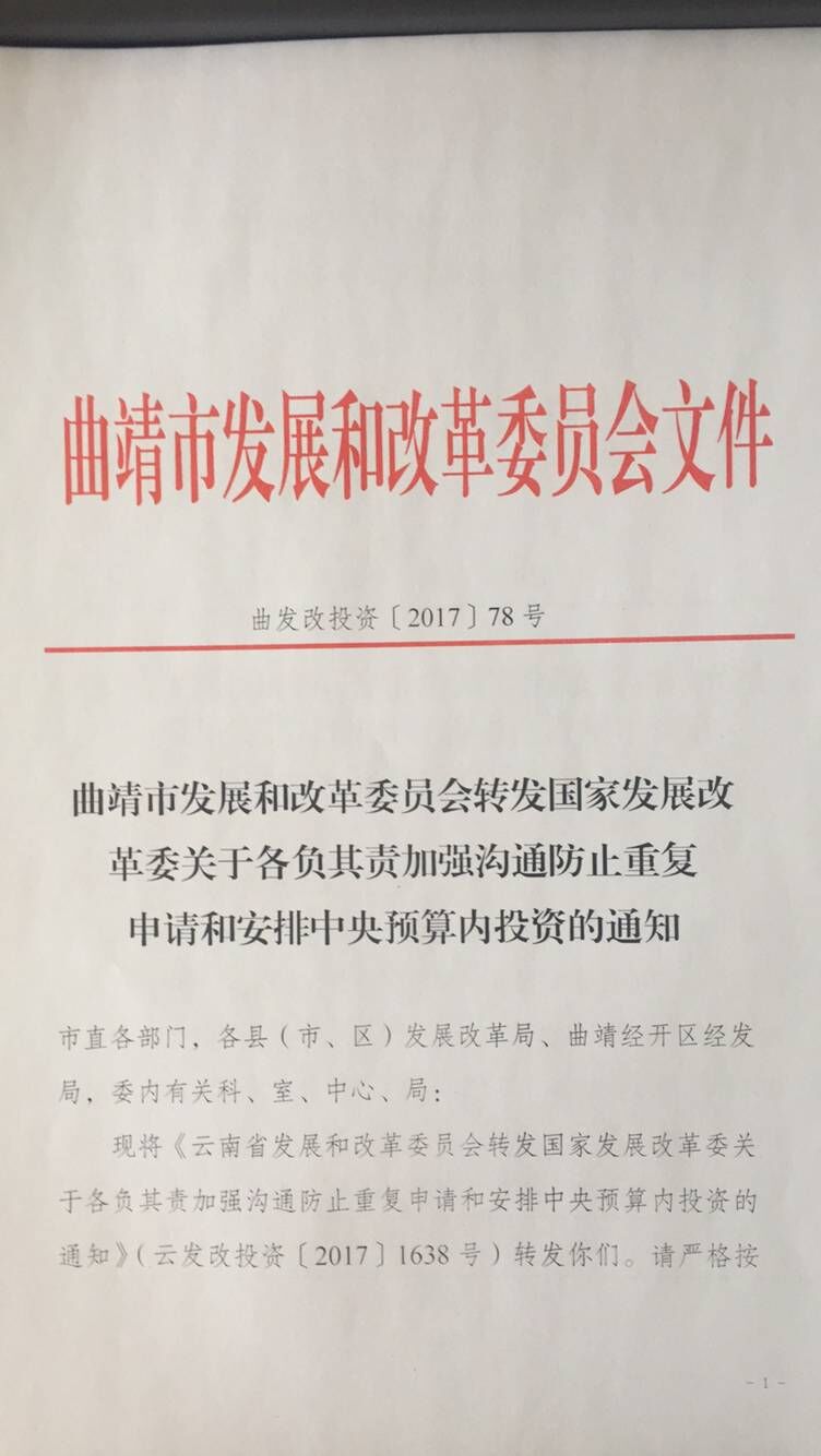 曲靖市发改委转发国家发展改革委关于各负其责加强沟通防止重复申请和安排中央预算内投资的通知